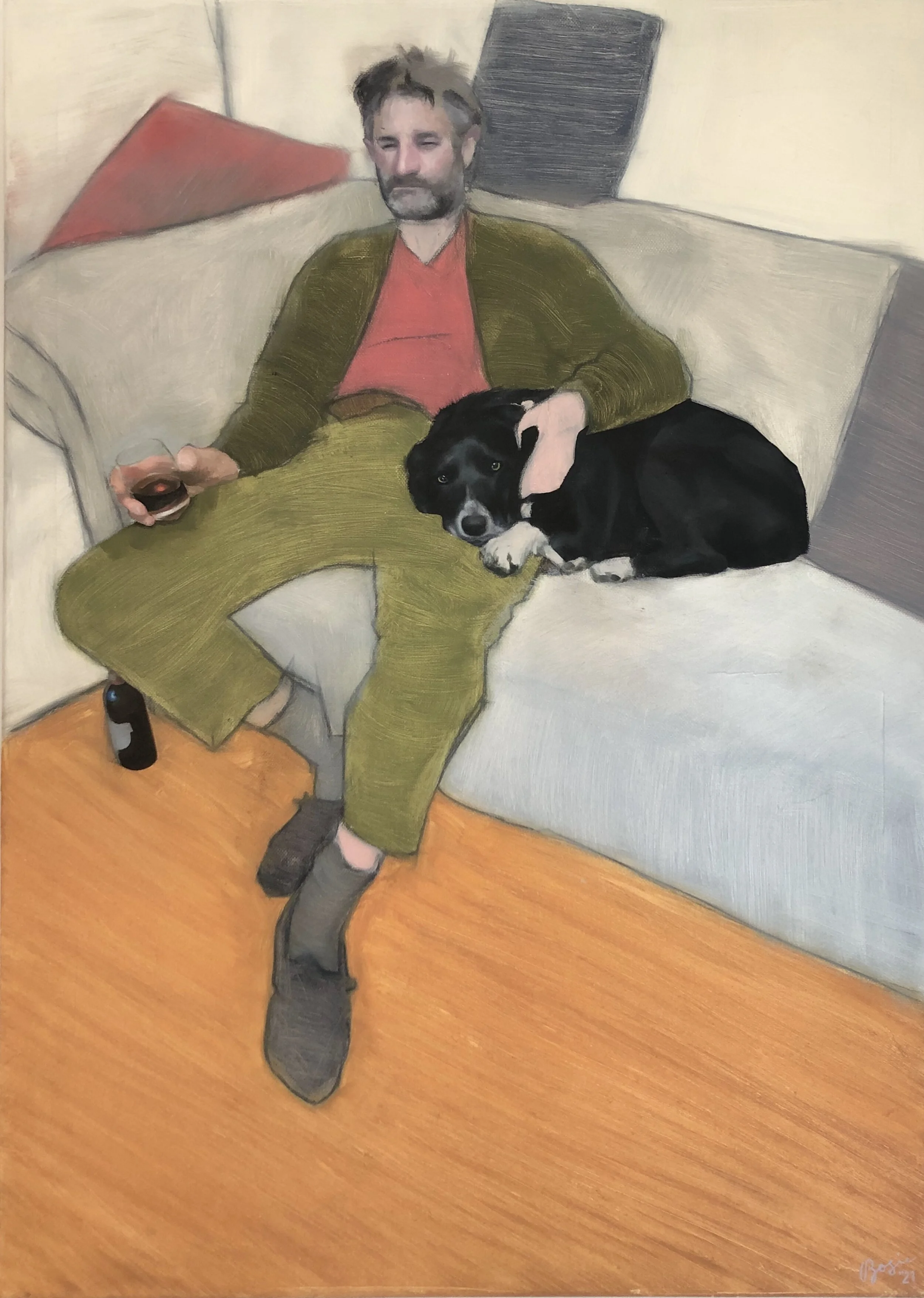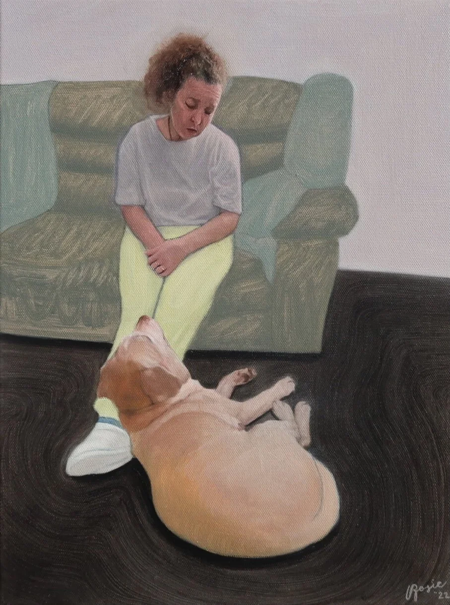 Self portrait with Babs, oil on canvas, 24x36” (2024)