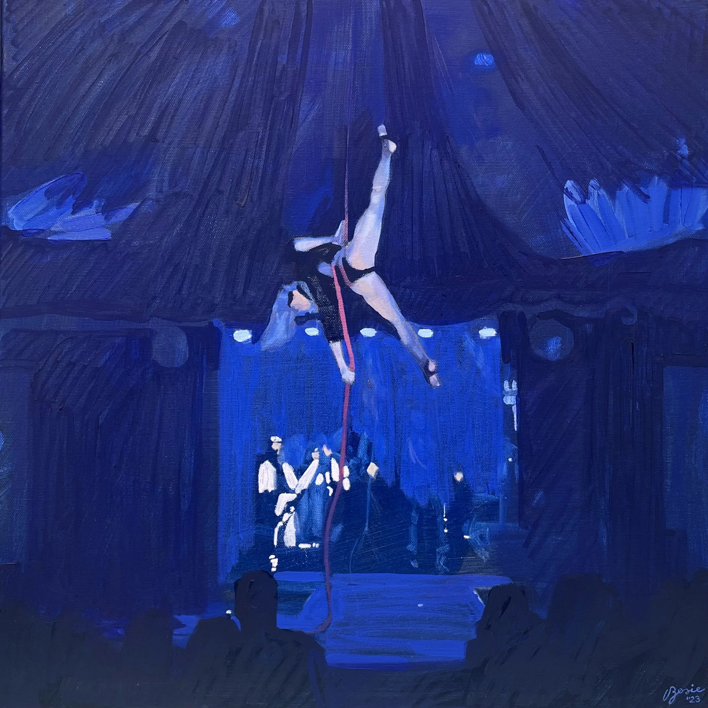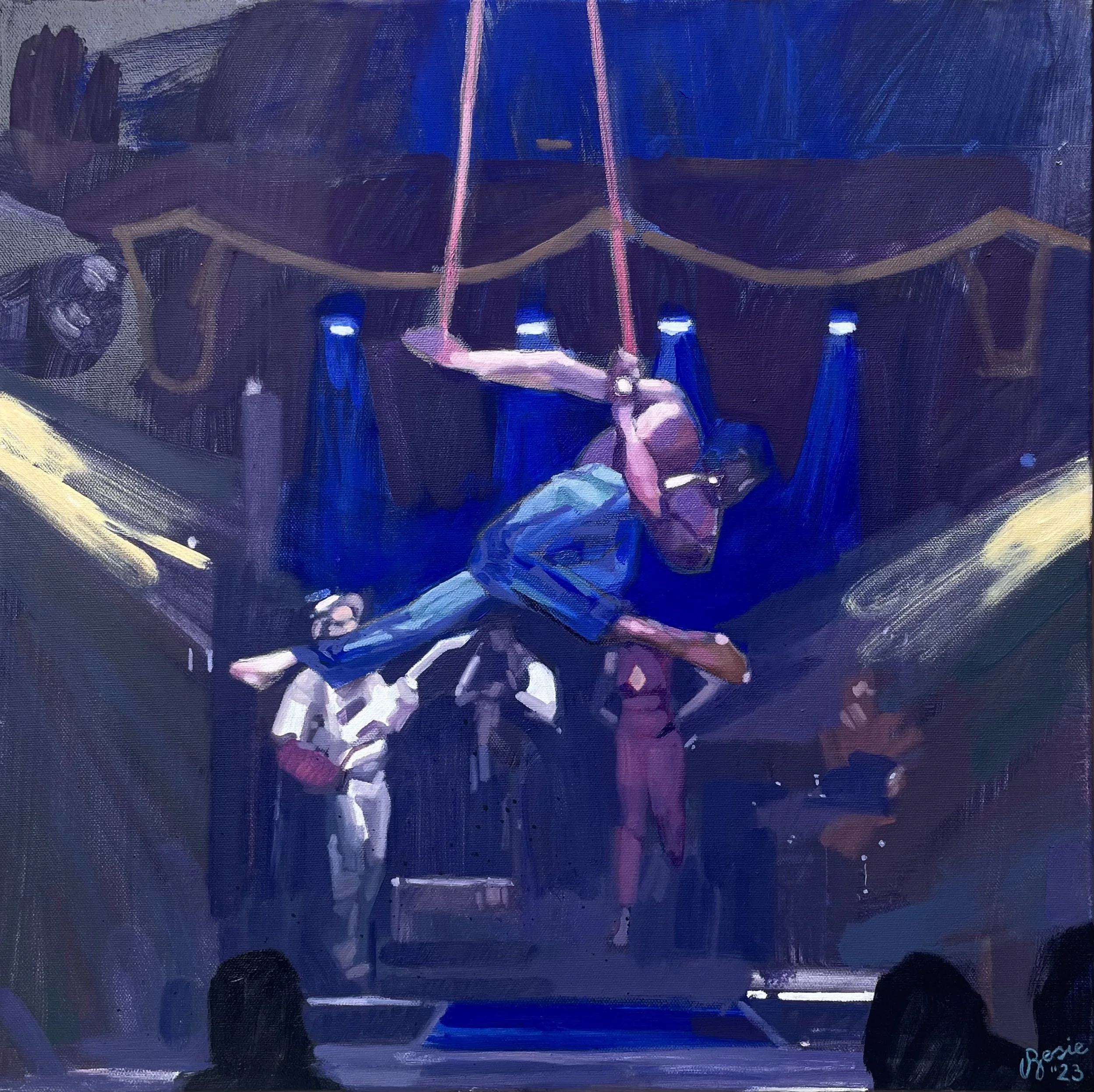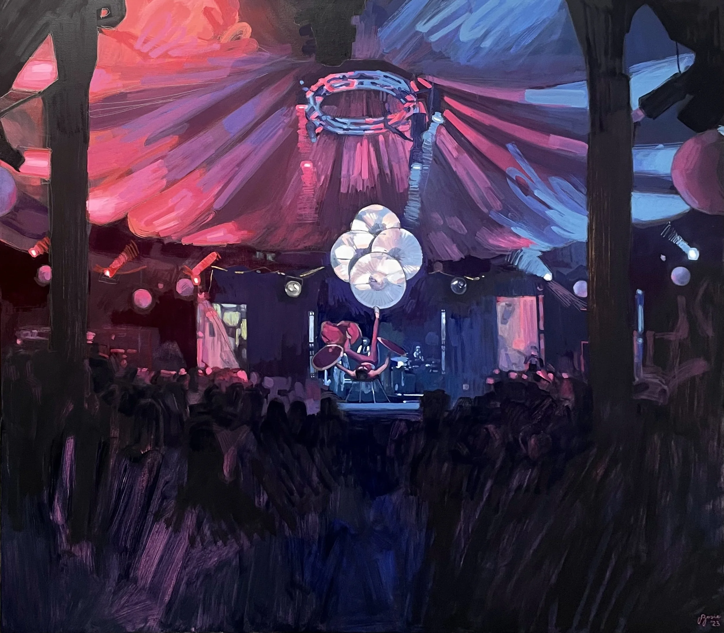 Le Coup at the Spiegeltent, oil on linen, 67x60” (2023)
